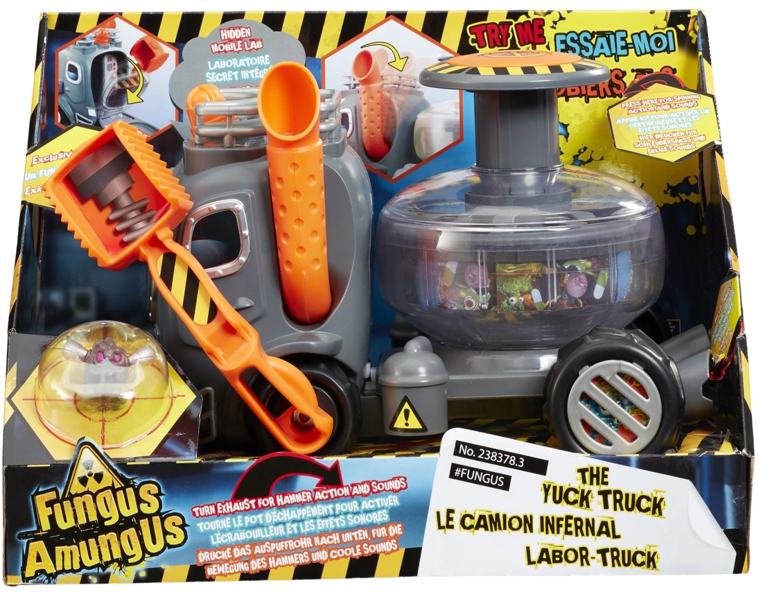 Fungus Amungus Όχημα Yuck Truck Όχημα Fungus Amungus Yuck Truck με ήχους και με 1 αποκλειστική φιγούρα Fungus Amungus. Βάλε τα Fungus Amungus στον κάδο του οχήματος και περίστρεψέ τα! Χτύπα τα με το σφυρί και άκου τα να φωνάζουν! *Λειτουργεί με 2 x AAA(LR3) μπαταρίες οι οποίες περιλαμβάνονται.
