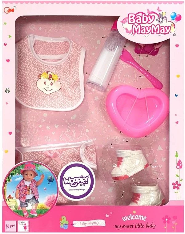 Σετ Ρούχω Baby Maymay Το σετ ταΐσματος θα είναι μια εξαιρετική προσθήκη στην κούκλα σας. Το παιδί αναπτύσσει τη φαντασία και τη δημιουργικότητα παίζοντας με το μωρό του. Σχεδιασμένο για κούκλα με διαστάσεις 43-46 cm. – σαλιάρα – πάνα – ένα μπουκάλι με γάλα – ένα μπολ – κουταλάκι του…