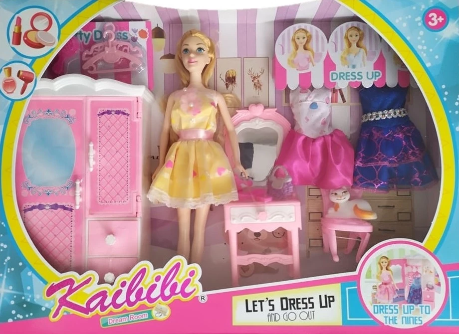 Κούκλα Kailili Σετ Με Ντουλάπα Και Αξεσουάρ Περιλαμβάνει την κούκλα, 2 επιπλέον φορέματα, ντουλάπα, έπιπλο με καθρέφτη και καρέκλα!