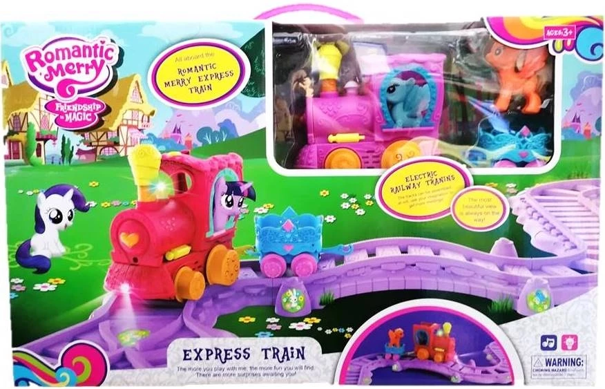 Σιδηροδρομος Μπαταριας Pony Με Τρενο Romantic Merry Με 2 Φιγουρες Μπορείτε να δημιουργήσετε 4 διαφορετικά σχέδια σιδηροδρόμου. Περιλαμβάνονται 2 φιγούρες πόνυ.