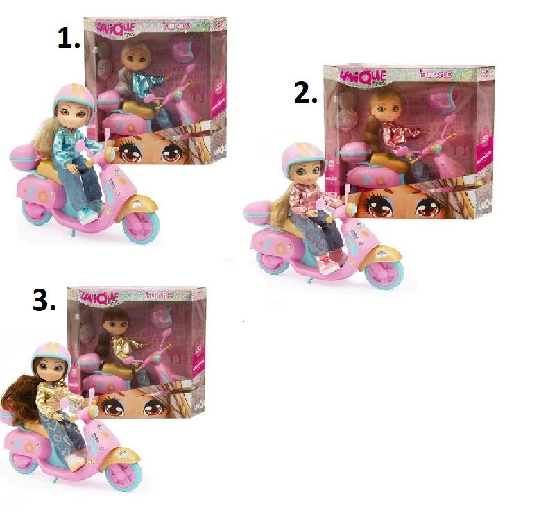 Κούκλα Unique Eyes Fun Ride με Σκούτερ 3 σχέδια Δείτε τον κόσμο με τα μαγικά μάτια των Unique Eyes! Το βλέμα τους σας ακολουθεί παντού! Κούκλα μόδας με μακριά μαλλιά, μοντέρνα ρούχα και αρθρώσεις. Μπορεί και στέκεται! Οι 3 αγαπημένες φίλες Rebecca, Amy και Sophia τώρα με το δικό τους…