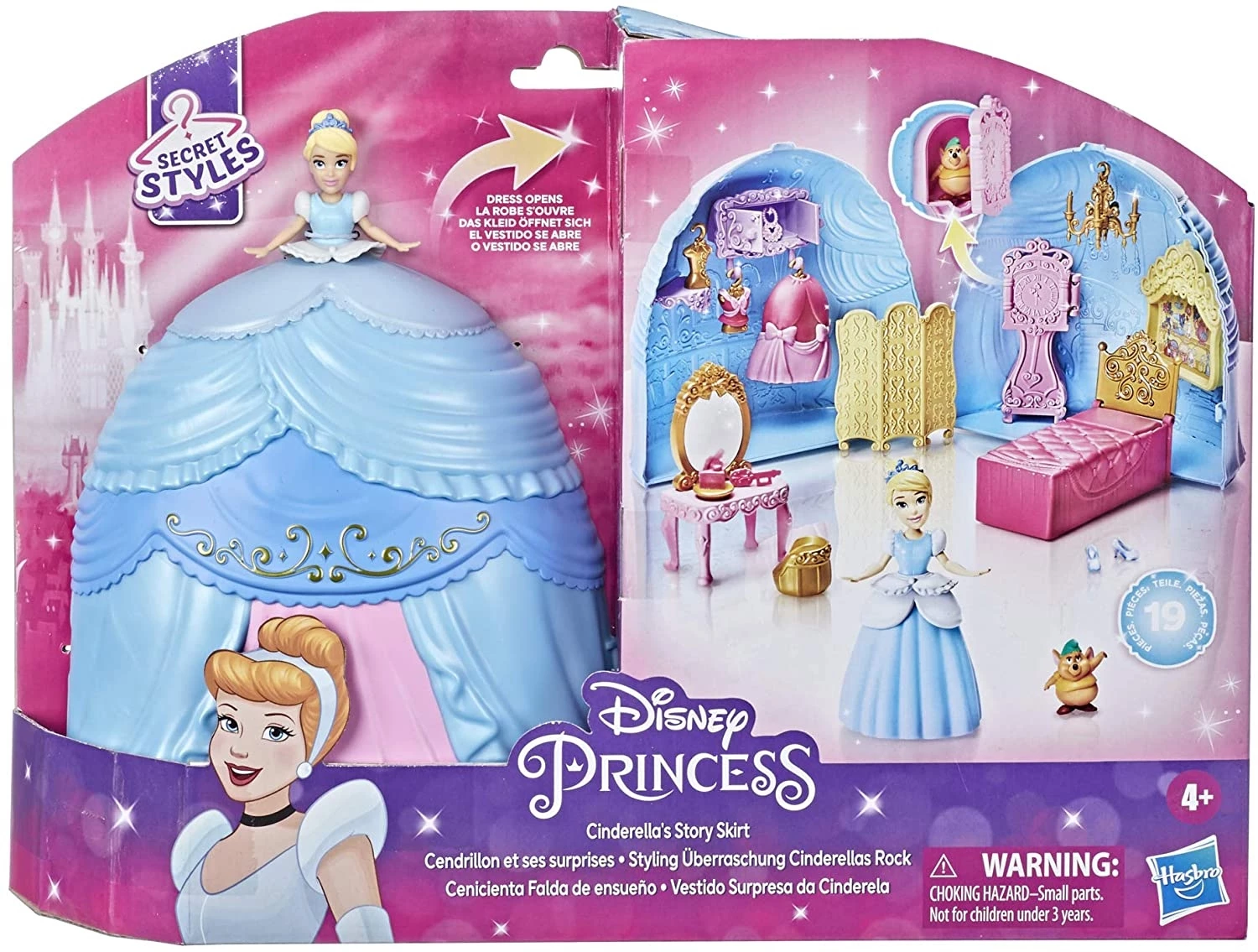 Disney Princess Small Doll Cinderella Story Skirt Ανακαλύψτε έναν κρυφό κόσμο μόδας και διασκέδασης με την Disney Princess Secret Styles Fashion Surprise Cinderella. Αυτή η κούκλα Disney Princess 8,4 εκατοστών έρχεται σε μια μεγάλη φούστα που ανοίγει για να αποκαλύψει ένα γκαρνταρόμπα μέσα, με καθρέφτη. Τα παιδιά μπορούν να ντύσουν…