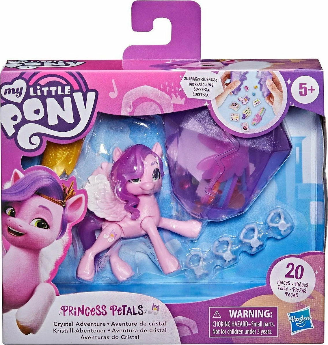 Hasbro My Little Pony A New Generation Crystal Adventure Princess Petals 20 κομμάτια Ετοίμασε την Princess Petal για το σόου! Φόρεσε το βραχιόλι με τα φυλαχτά Δες τις εκπλήξεις που κρύβει το διαμάντι