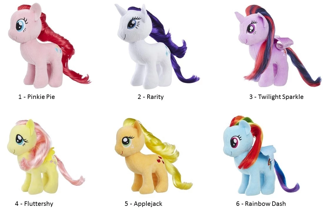 My Little Pony Pinkie Pie Μικρό Μαλακό Λούτρινο Αυτά τα αξιαγάπητα πόνυ λατρεύουν τις αγκαλιές. Διαθέτουν μέγεθος 6.5 ιντσών. Σύλλεξε και τα 6 πόνι και μεγάλωσε τη συλλογή σου! (Κάθε ένα πωλείται χωριστά. Ανάλογα τη διαθεσιμότητα.) Διατίθεται σε: •Pinkie Pie •Rarity •Twilight Sparkle •Fluttershy •Applejack •Rainbow Dash