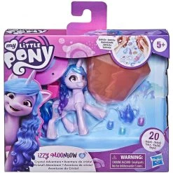 Pony Movie Crystal Adventure Ponies Izzy MoonBow My Little Pony: Η Νέα Γενιά είναι συμβατές με το Κάστρο των Πηγασων! Περιλαμβάνει φιγούρα, δοχείο σε σχήμα κρυστάλλου, βραχιόλι φιλίας, 7 φυλαχτά, 4 φύλλα με αυτοκόλλητα, στέμα, τσάντα σέλας, 4 πατίνια και προσωρινά τατουάζ