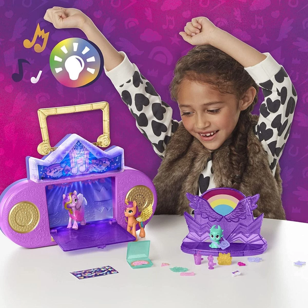 Pony Musical Mane Melody Το πρώτο σαλόνι καραόκε του Maretime Bay! Το Musical Mane Melody είναι ένα σετ 2 σε 1 με φώτα και ήχους που ενεργοποιούνται με πόνυ. Στη μια πλευρά είναι ένα σαλόνι που περιλαμβάνει στεγνωτήριο χαίτης, μια ντουλάπα για την αποθήκευση αξεσουάρ και έναν καθρέφτη από ουράνιο…