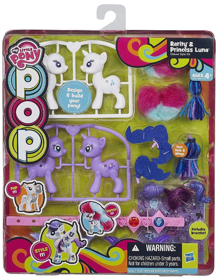 Pony Pop Deluxe Multi Character Pack. Φτιάξε το δικό σου ξεχωριστό πόνυ και διακόσμησέ το όπως θες! Σετ με 2 πονυ (Rarity και Princess Luna), αυτοκόλλητα και πολλά αξεσουάρ για τους πιο ωραίους συνδυασμούς!