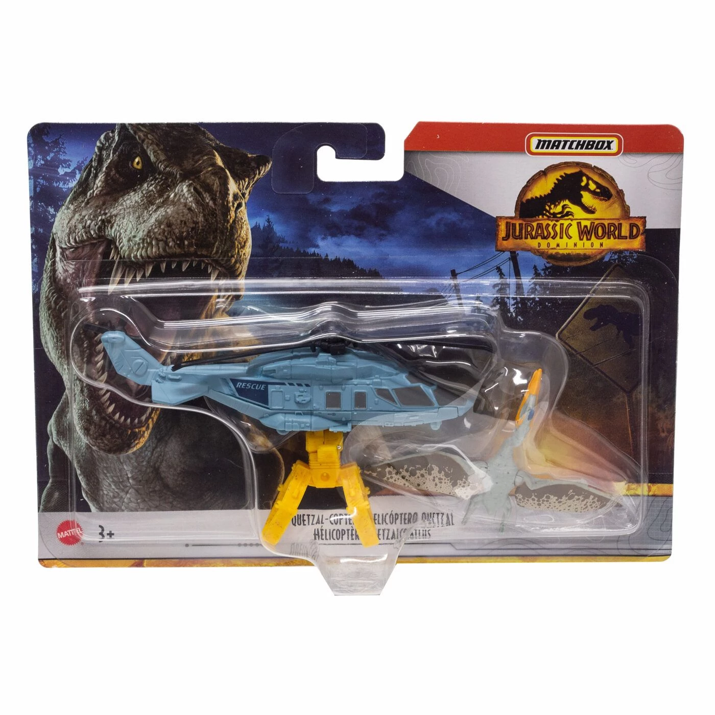Jurassic World Σετ Αυτοκινητάκια και Δεινόσαυροι Quetzal-Copter Αυτά τα Matchbox Jurassic World Dino Transporters είναι γεμάτα ενθουσιασμό και περιπέτεια! Εμπνευσμένο από το franchise Jurassic World, συμπεριλαμβανομένου του νέου Jurassic World Dominion, κάθε όχημα συνοδεύεται από 1-2 μίνι δεινόσαυρους για μεταφορά,όπως ο άγριος Tyrannosaurus rex και άλλοι.