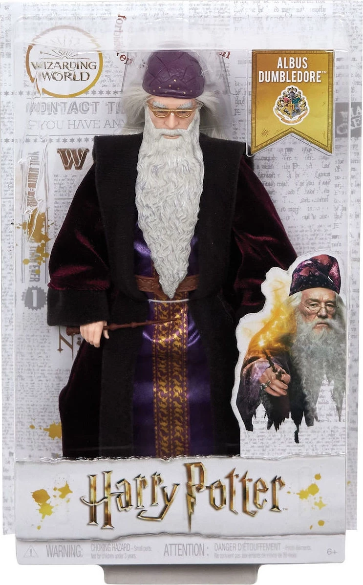 Συλλεκτική Κούκλα (30 εκ.) με Στολή Χόγκουαρτς και Ραβδί. Αυτή η κούκλα, εμπνευσμένη από την ταινία, φέρνει τον Χάρι Πότερ και την παρέα του πίσω στο Χόγκουαρτς! Οι μικροί οπαδοί του Χάρι Πότερ μπορούν να αναπαραστήσουν τις αγαπημένες τους στιγμές από τις ταινίες ή να φανταστούν τις δικές τους με αυτές τις κούκλες. Ο καθηγητής Ντάμπλντορ μοιάζει ακριβώς όπως ο χαρακτήρας των διάσημων ταινιών και είναι ντυμένος με τη χαρακτηριστική του κάπα, καπέλο και γυαλιά. Με έντεκα “αρθρώσεις” (στο λαιμό, στους ώμους, στους γοφούς, στα γόνατα, στους αγκώνες και στους καρπούς) ο καθηγητής Ντάμπλντορ είναι έτοιμος για πολλές ιστορίες δράσης και χαρακτηριστικές πόζες!