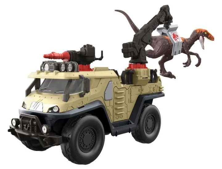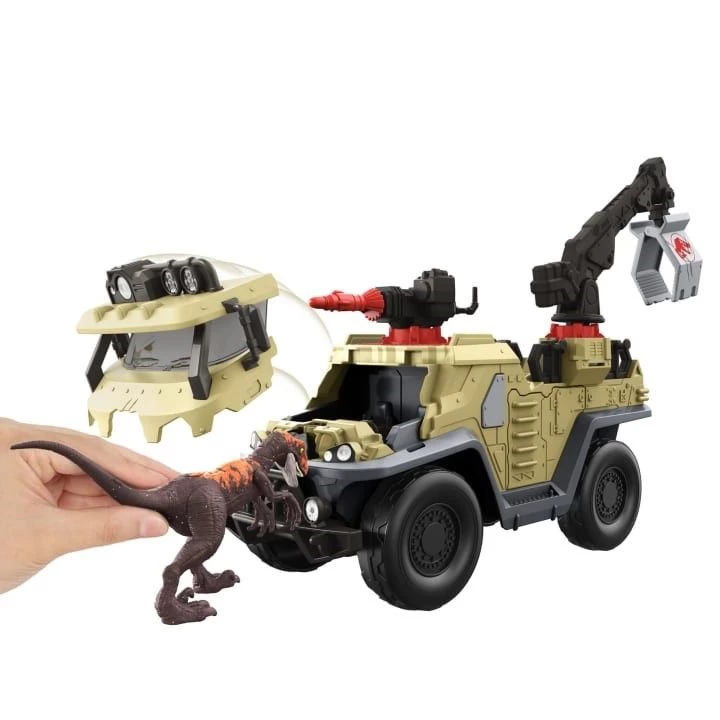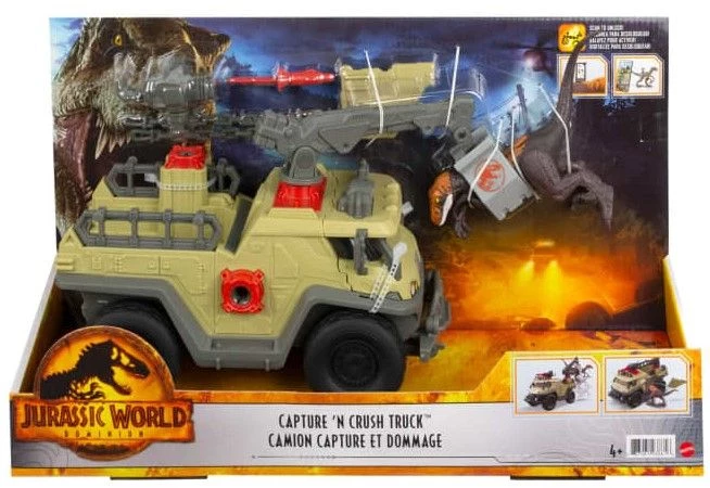 Jurrasic World Όχημα Capture And Crush Ετοιμαστείτε για συγκινήσεις και περιπέτεια με το Capture ‘N Crush Truck™, εμπνευσμένο από το Jurassic World: Dominion. Αυτό το όχημα Capture ‘N Crush Truck™ είναι σχεδιασμένο για να αιχμαλωτίζει δεινόσαυρους στο χαλαρό! Το όχημα διαθέτει βέλος εκτόξευσης και ηρεμιστικό, περιστρεφόμενο γερανό για ανύψωση δεινοσαύρων…